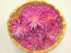 淡い紫色で花びらが筒状になっている食用ぎく。